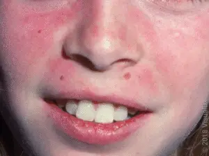 A classic “butterfly” rash across the cheeks and nose (malar rash) in a person with lupus. About 70–80% of lupus patients develop skin rashes, and in 20% of cases a rash like this is the first noticeable sign of the diseasegoodrx.com.